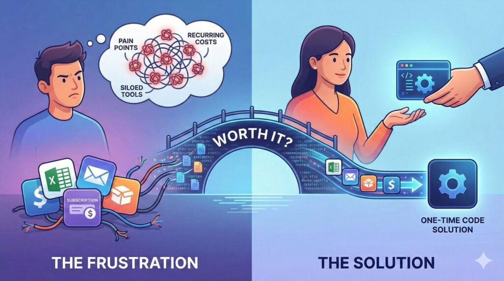 The Developer Alternative: Often, the specific function that subscription tool performs can be replicated with a custom script—a piece of code written just for you. You pay for the development once, and you own the solution forever. The ROI on replacing monthly subscriptions with permanent code happens surprisingly fast.